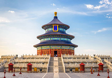 The Temple of Heaven in Beijing, China, is an imperial complex of religious buildings constructed in the early 15th century. Emperors of the Ming and Qing dynasties visited this site to pray for good harvests. The temple's main structures include the Hall of Prayer for Good Harvests, the Imperial Vault of Heaven, and the Circular Mound Altar.